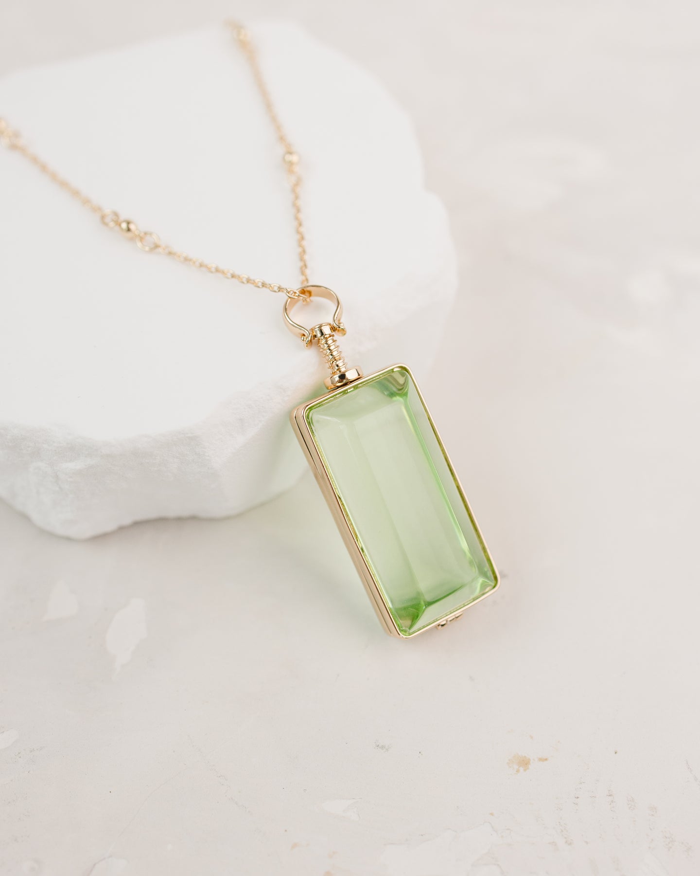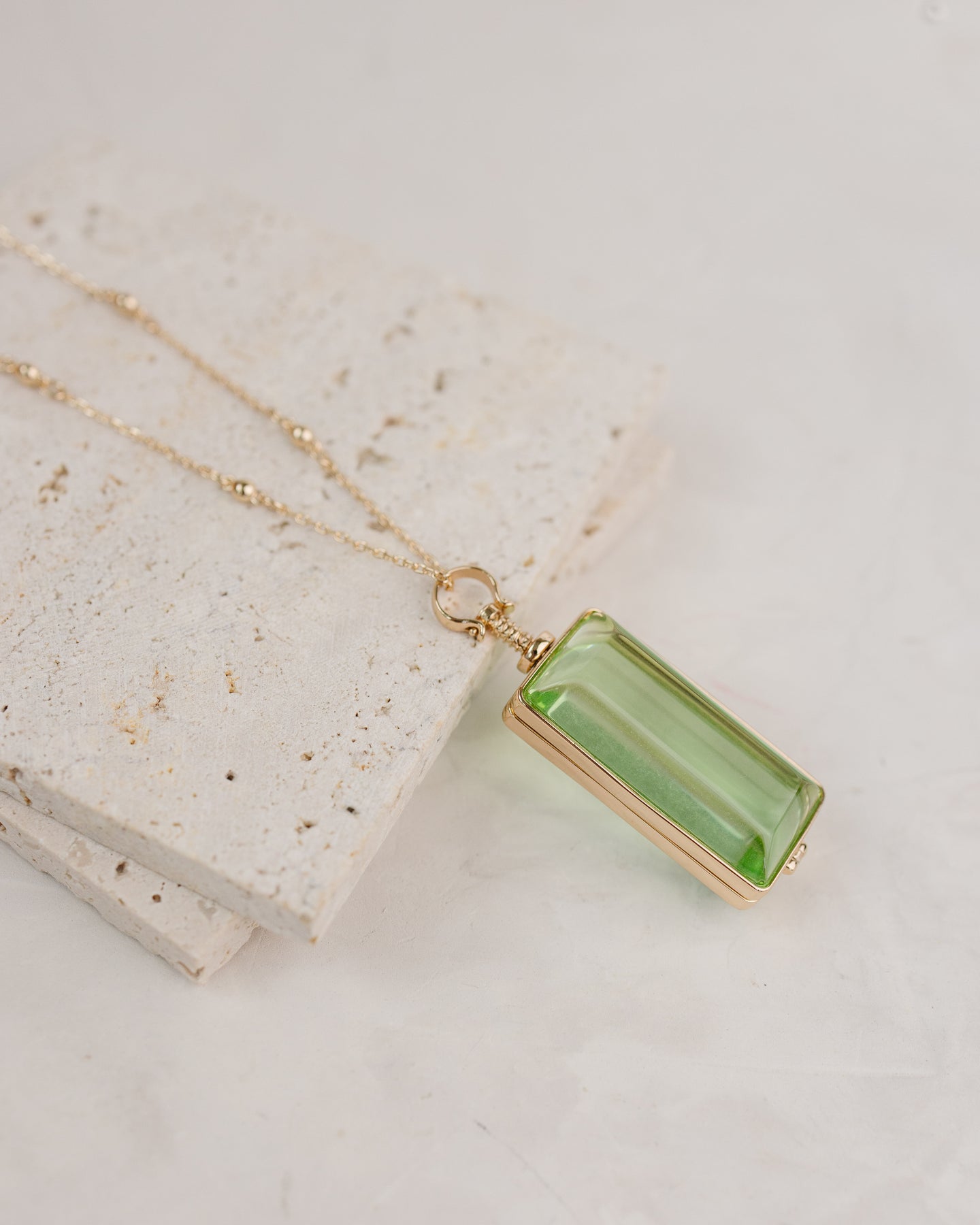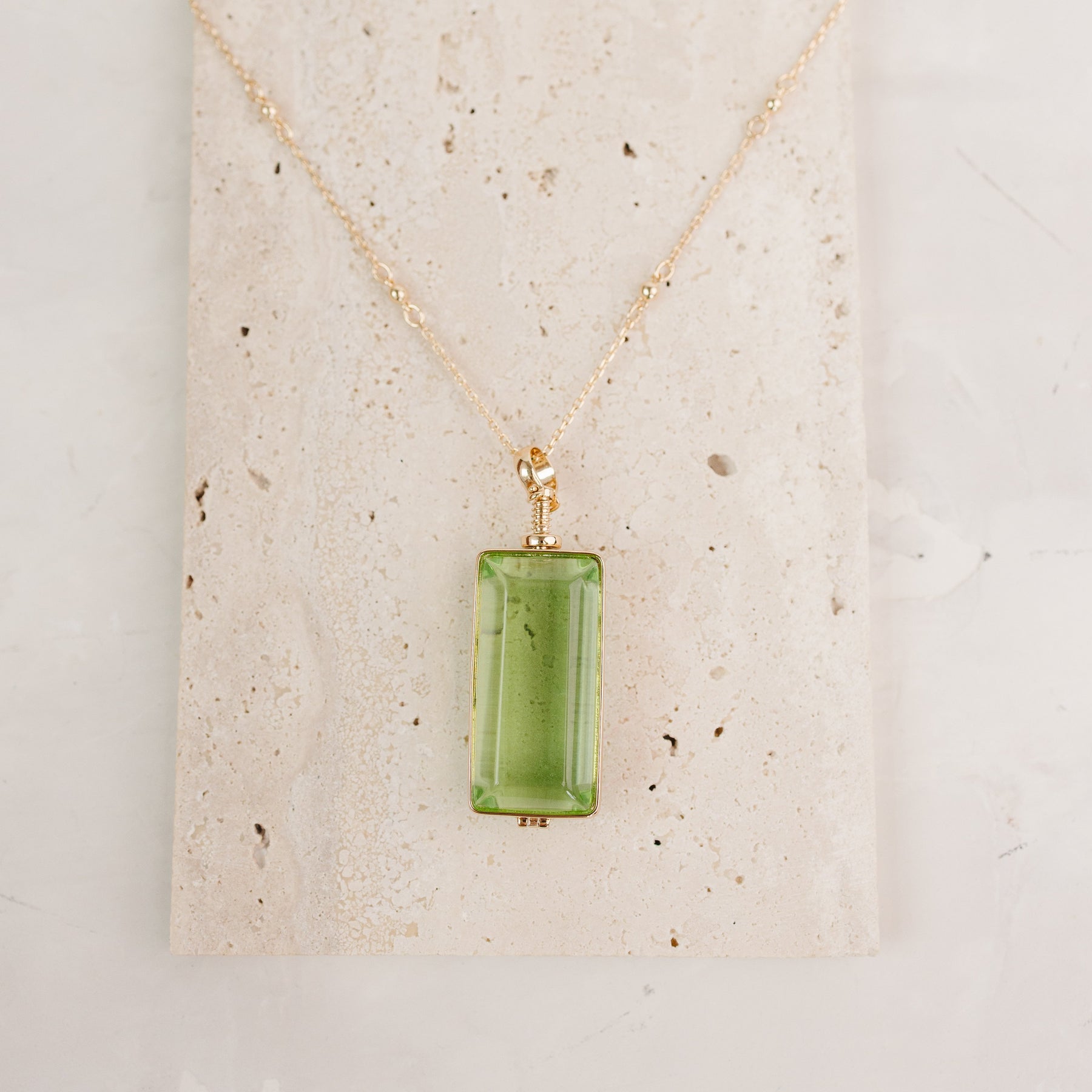- Rectangle glass locket with green double-sided viewing