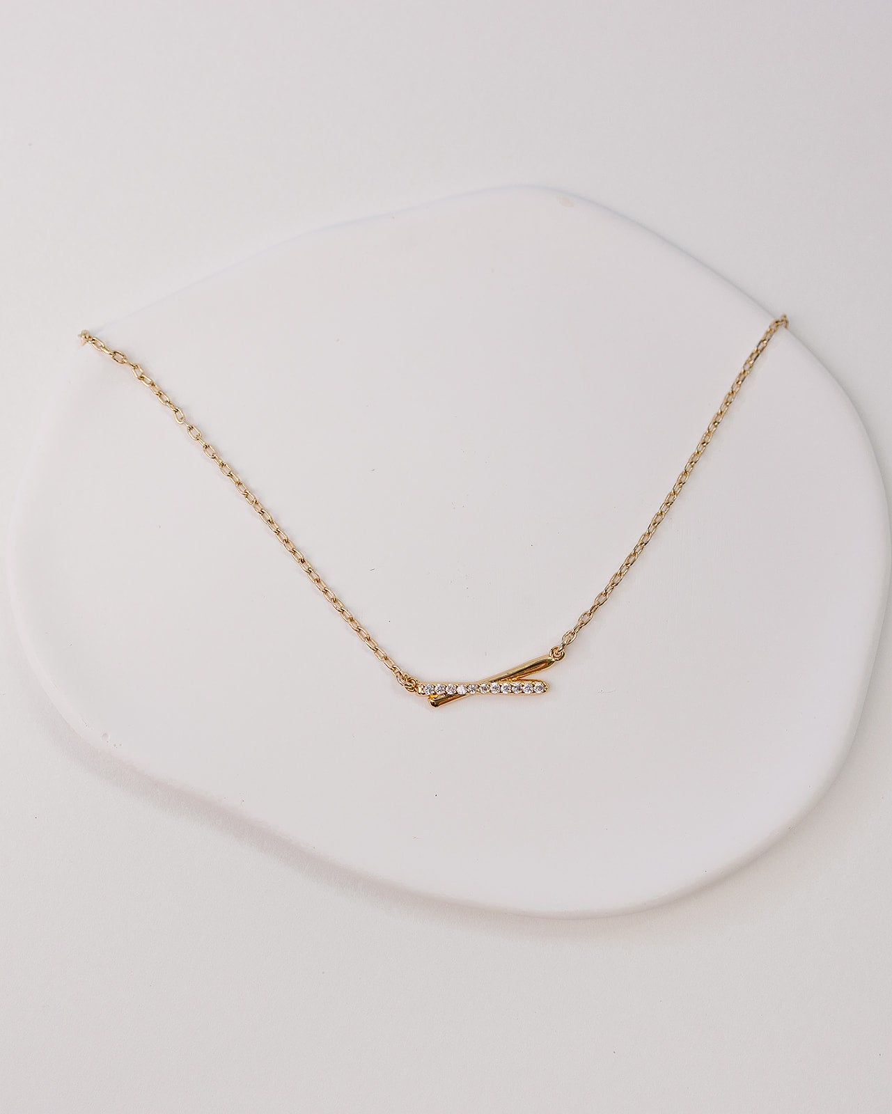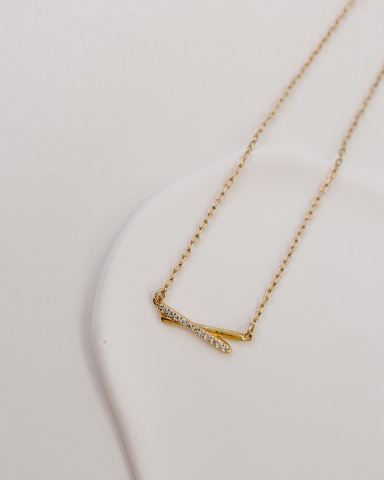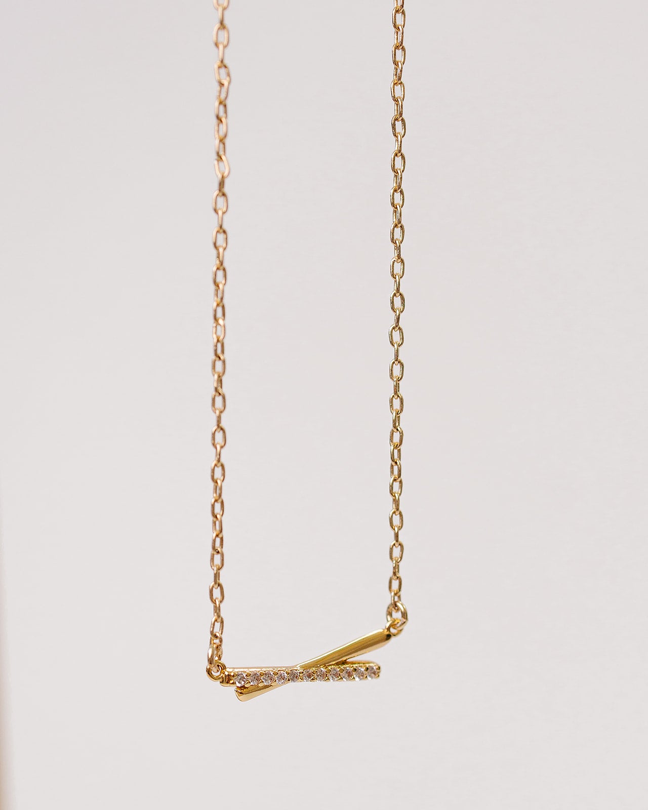 I Ski Necklace. Gold skis crossed with CZ accents.