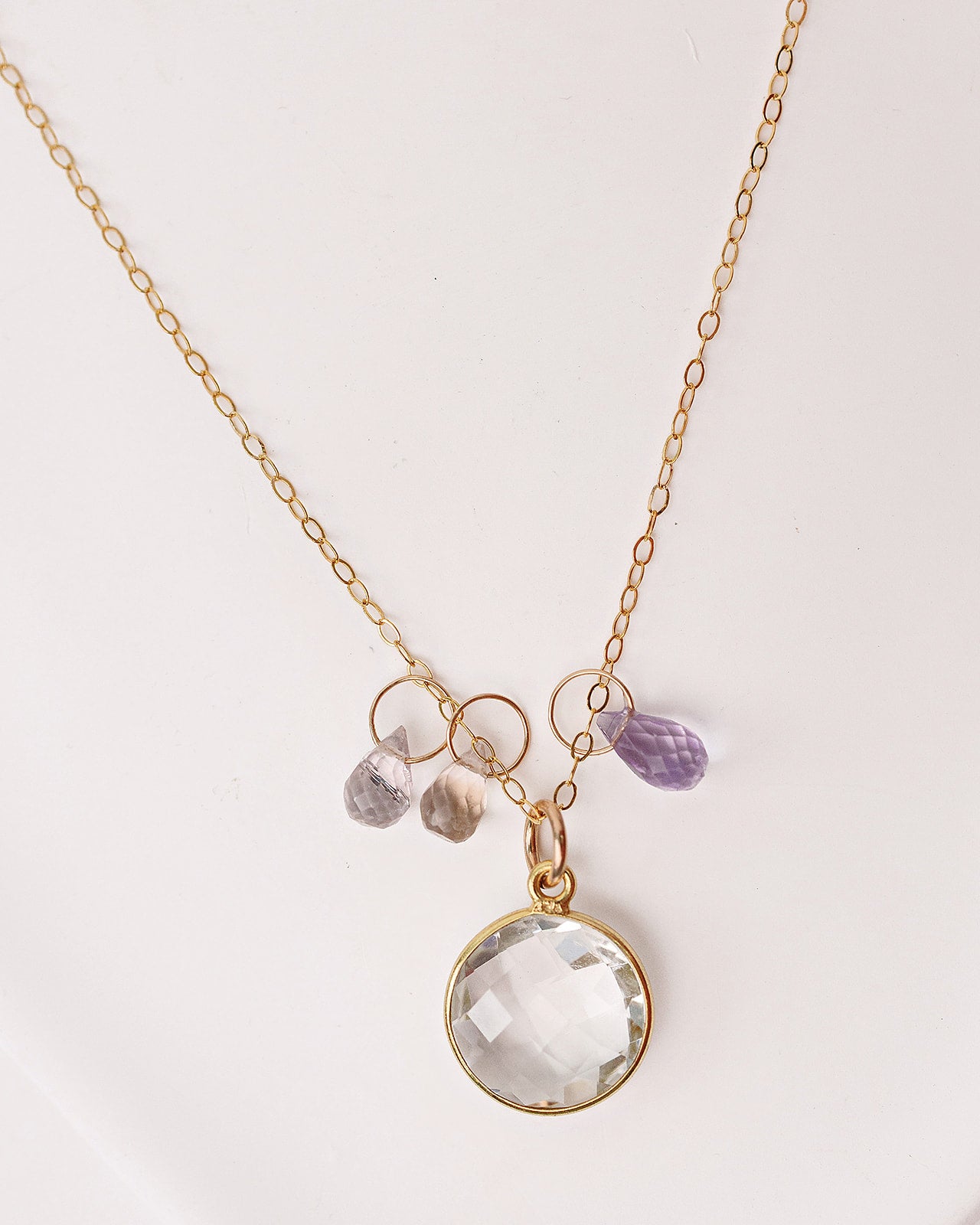 The Lilac Necklace. Round quartz pendant with briolettes in shade of amethyst.