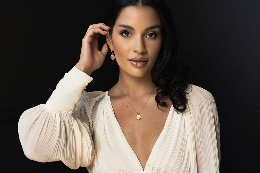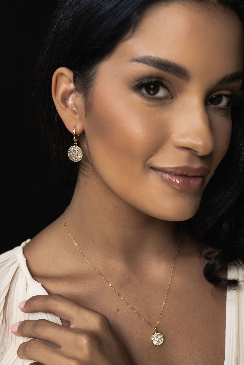 The Chandler necklace. A round disc pendant with small cz’s. Elegant gold filled chain