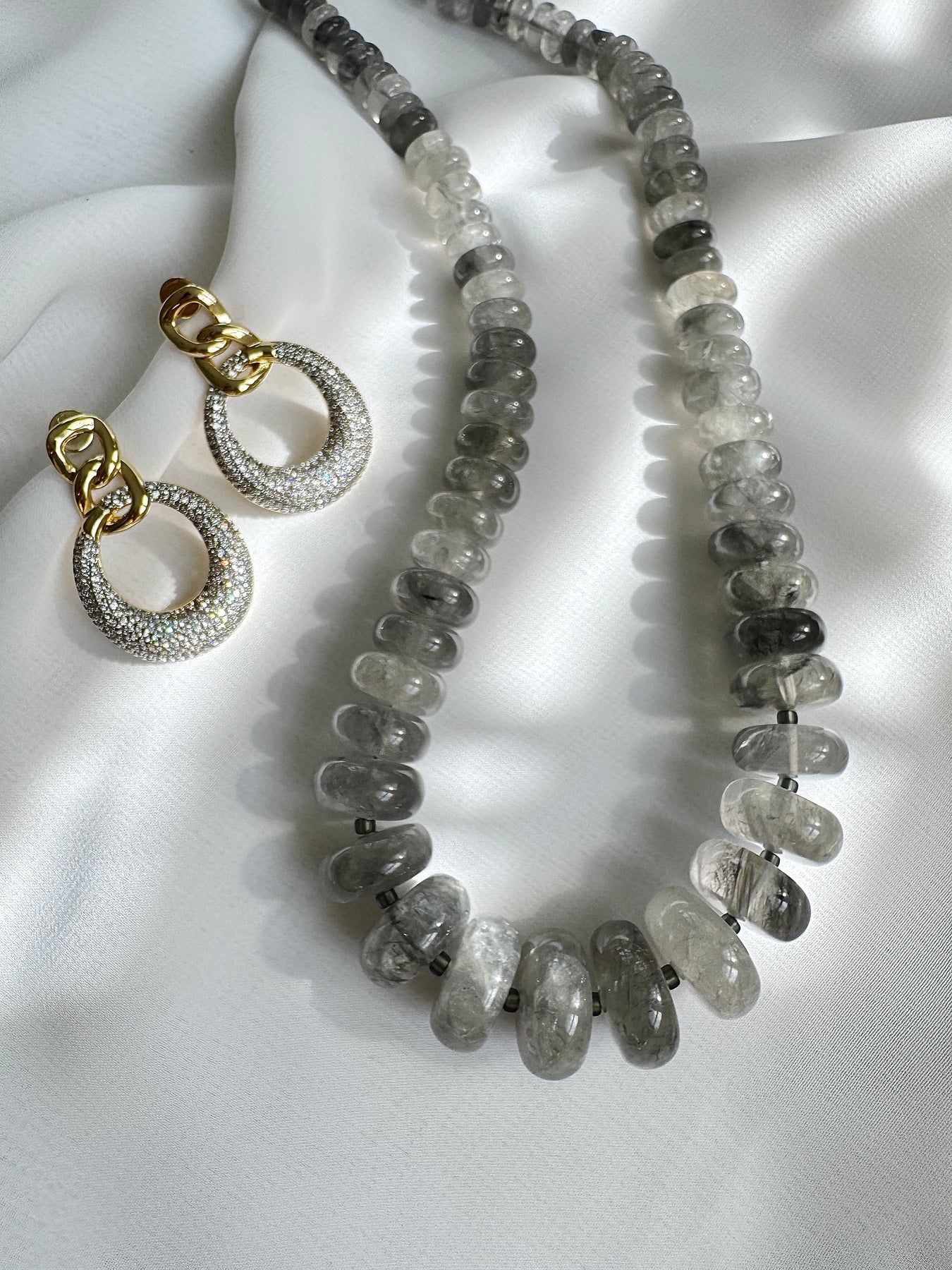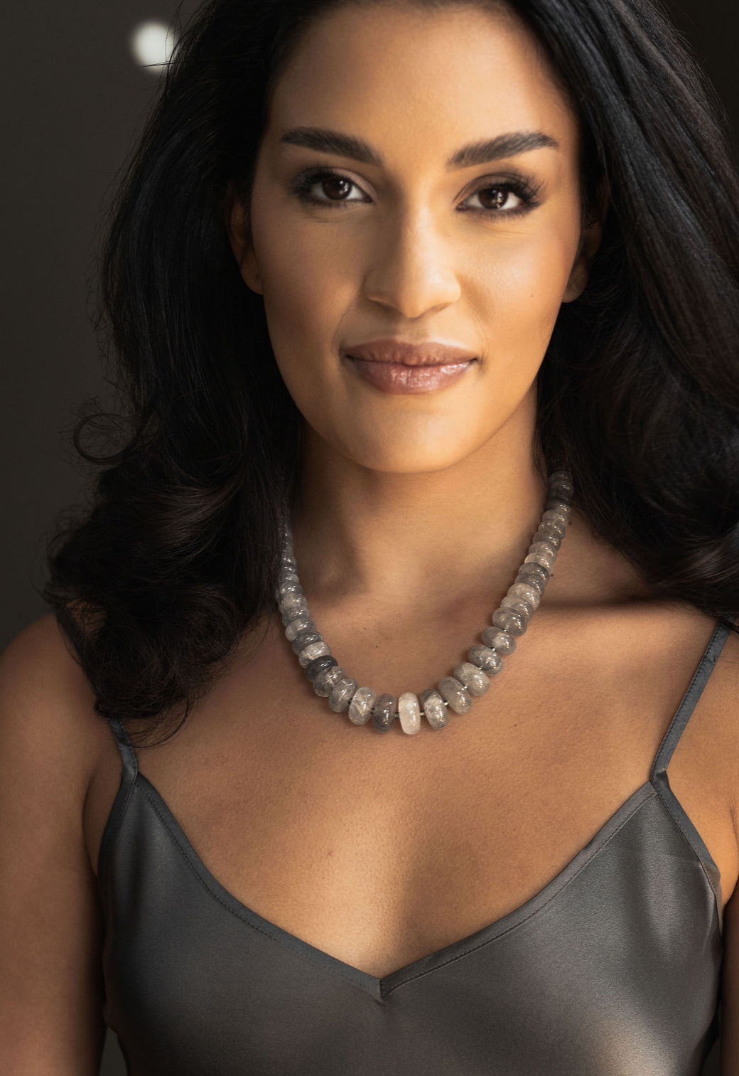 The Margaret Quartz Necklace. Gorgeous natural grey labradorite. Each stone is smooth and unique in patterns. A gorgeous statement piece.