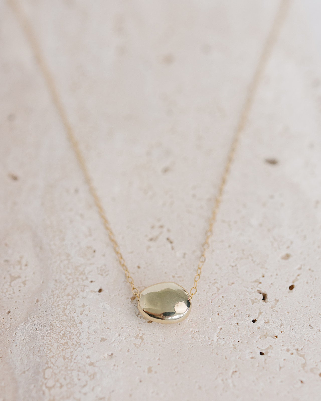 The Pebble Necklace. Simplicity in pebble form. A dainty gold filled chain flows through the organic shaped pebble.
