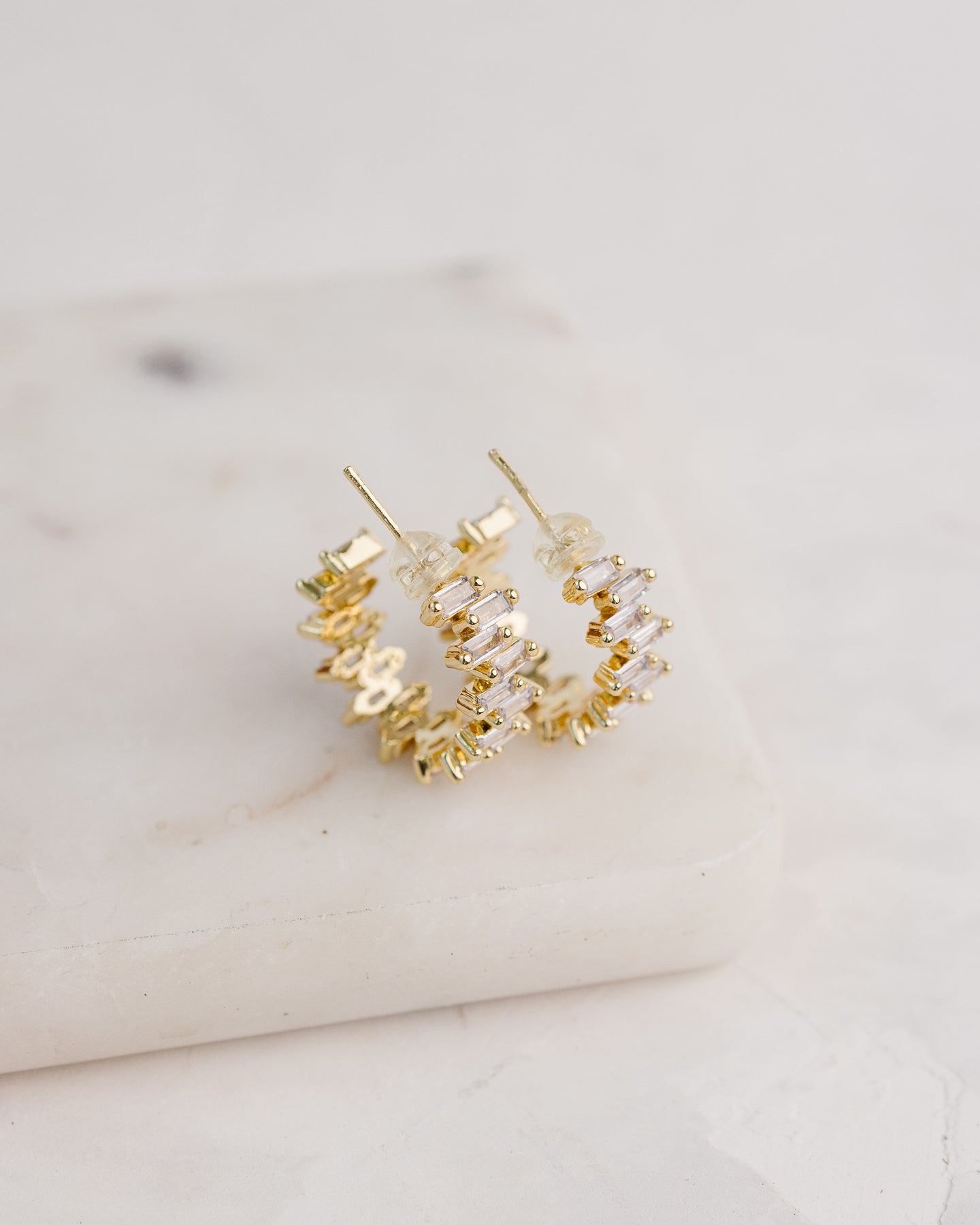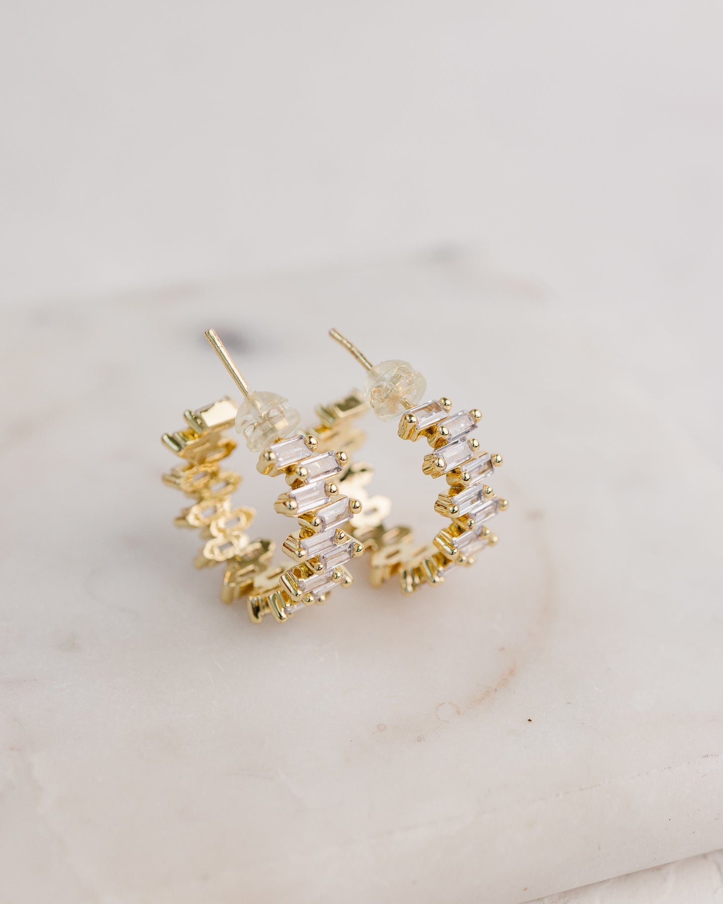 Side Step Baguette Hoops.  Push clasp.