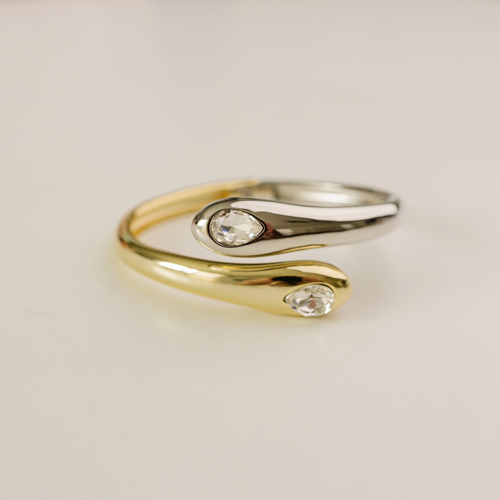 Cocktail Bracelet. Gold and Silver Mix. Hinged bracelet. Crystal accents.